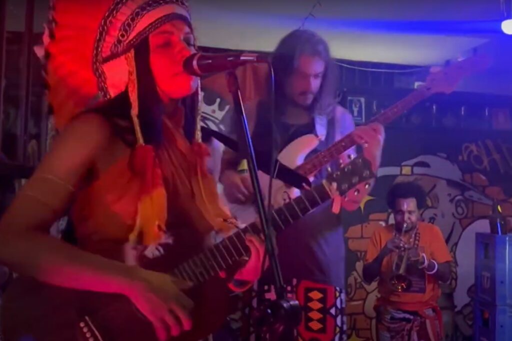 Kamba Kawara – é compositor, cantor e toca violão, trompete, bateria e percussão. É fundador da banda e co-responsável pela Direção Artística.